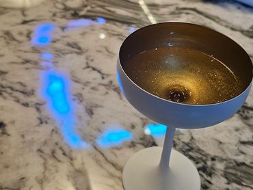The charging halo is a glowing ring of light that is projected through the countertop stone. It is used to illuminate the active charging zone, showing users where to place their devices.